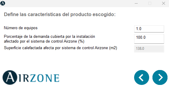 En este caso, además de especificar la cantidad de equipos que queremos implementar, se mostrará un cuadro de texto donde deberemos indicar el porcentaje de la demanda cubierta por la instalación que está influenciado por el sistema de control Airzone.