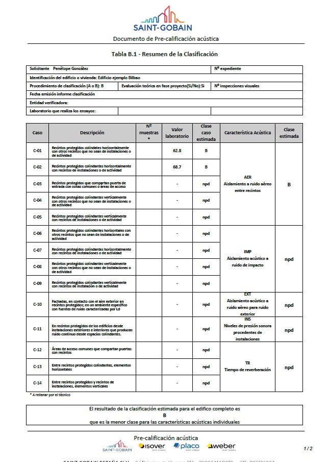 Complemento Saint-Gobain para la Verificación del CTE-DBHR (sgAcustic)