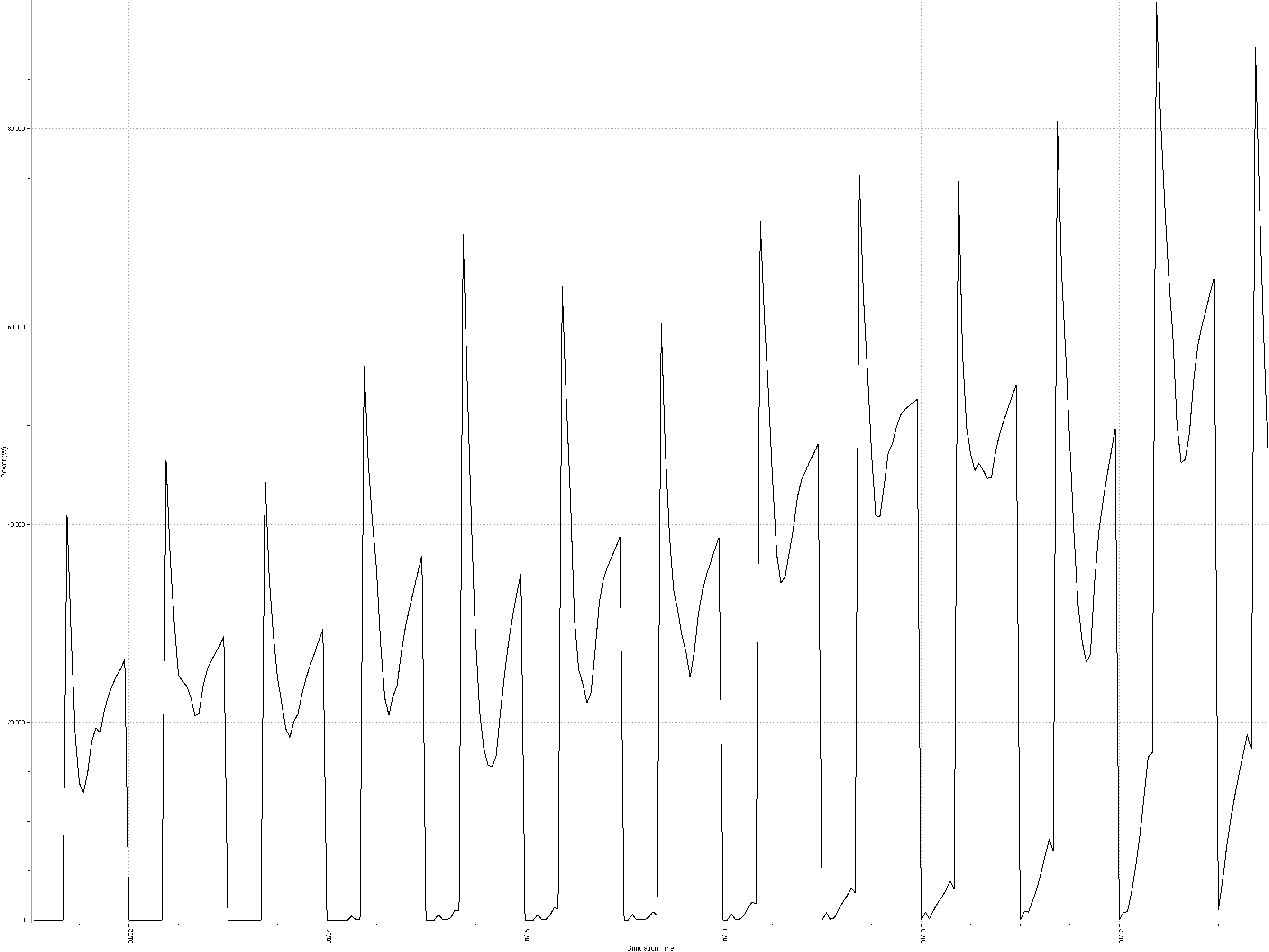 También se puede ver la evolución de potencia instantanea aportada por las calderas o enfriadoras: