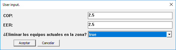 - Herramienta para introducir bombas de calor de forma simplificada. Esta herramienta introduce bombas de calor a los espacios seleccionados en Sketchup, preguntando si reemplaza a los posibles equipos de zona previos que pudieran tener esas zonas (radiadores o suelo radiante).